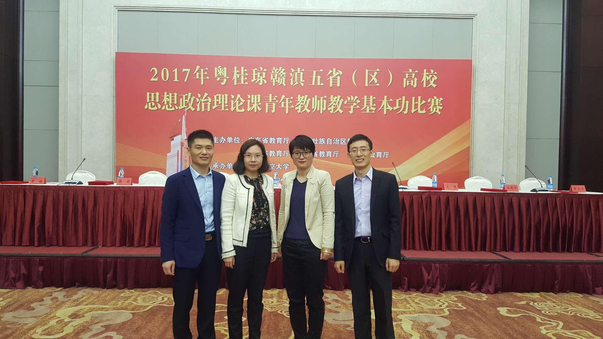 11月29日至12月1日,2017年粤赣滇琼桂五省区高校思想政治理论课青年教师基本功大赛在江西省南昌市举办,来自五省高校的20名优秀青年教师参加比赛,我校402永利集团官网徐满泽老师表现优异,取得了第二名的好成绩。