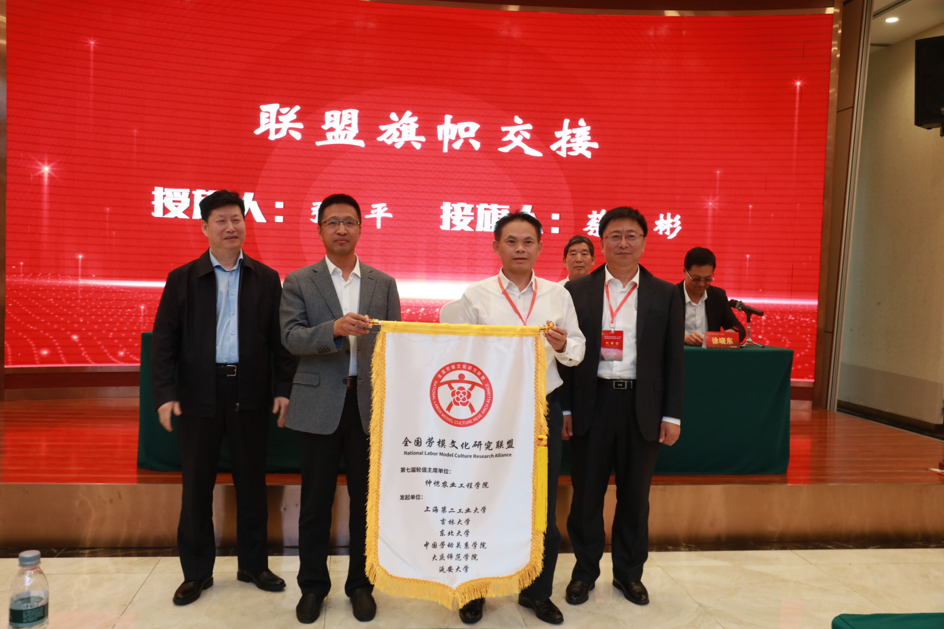 我校是全国劳模文化研究联盟第七届轮值主席单位。在闭幕式上,中共中央党史和文献研究院原宣传教育局副局长薛庆超对本次论坛进行总结,并举行了全国劳模文化研究联盟轮值主席旗帜交接仪式。大庆师范学院党委委员、副校长张平,大庆油田原党委副书记、大庆师范学院特聘教授王昆,全国劳模文化研究联盟秘书长、上海第二工业大学402永利集团官网党委书记刘文向我校授“全国劳模文化研究联盟第七届轮值主席单位”旗帜。