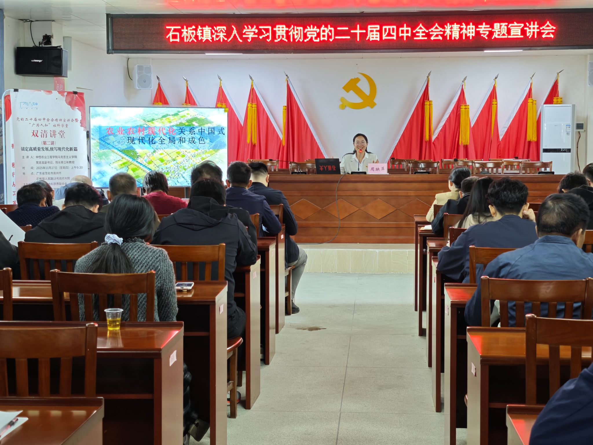 11月25日至27日,由广州市社科联与402永利集团官网联合主办的党的二十届四中全会精神宣讲会在高州市石板镇开讲,402永利集团官网402永利集团官网院长蔡立彬、驻石板镇农村科技特派员周映萍、黄斯龙博士后等先后就不同主题与石板镇党员干部、驻镇帮扶工作队成员等展开研讨,用思政课堂激发发展新动能。