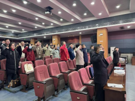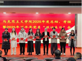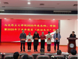 会议以庄重的党员集体“政治生日”仪式拉开序幕。在姜晓丽的领誓下,全体党员起立面向党旗、举起右拳,重温入党誓词,铿锵誓言回荡在会议室,彰显着思政教师“为党育人、为国育才”的坚定初心。仪式现场,学院为下半年入党的党员逐一送上定制“政治生日”贺卡,贺卡上印着党员的入党日期与学院的专属寄语。“‘政治生日’是党员的‘精神年轮’,”姜晓丽在致辞中强调,“希望各位教师以此次仪式为契机,把入党初心转化为思政课堂的育人实效,以党性修养筑牢立德树人的思想根基。”