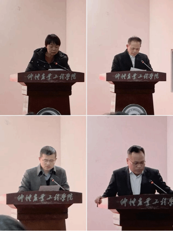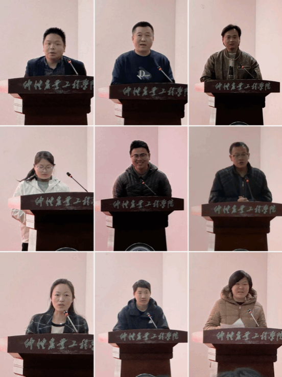 学院中层干部姜晓丽、蔡立彬、秦抗抗、李增添分别从德、能、勤、纪、廉等方面依次进行了现场述职。随后,参与2025年度考核评优的教职工也逐一上台进行了工作述职,大家围绕教学创新、科研攻关、学生思政工作、“百千万工程”社会服务等维度,全面汇报了年度履职成效——从“仲恺精神融入思政课”的教学改革,到乡村振兴调研的科研成果,从班主任工作的暖心故事,到院务服务的默默付出,生动展现了马院教师的责任与风采。述职结束后,现场开展无记名民主测评投票,全体教工进行投票。