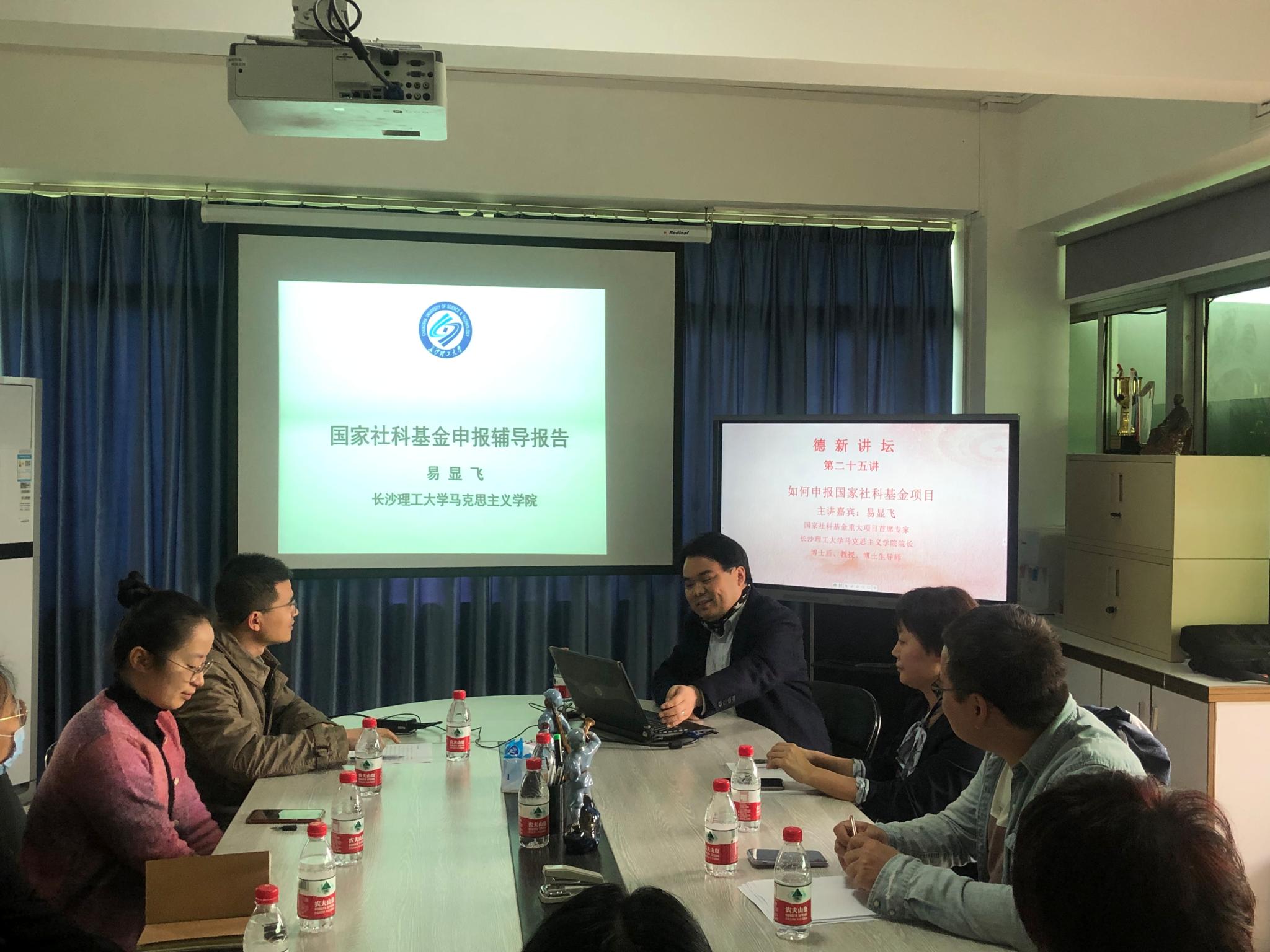 为提升我校青年教师的科研能力,12月23日下午,402永利集团官网在海珠校区行政楼西704会议室举行了德新讲坛第二十五讲,主题是“如何申报国家社科基金项目”。主讲嘉宾易显飞教授是国家社科基金重大项目首席专家。哲学博士,中国社科院哲学博士后,教授,博士生导师。长沙理工大学402永利集团官网党委书记、学科负责人。湖南省省级“优秀研究生导师”,湖南省“名师工作室”负责人。报告会由402永利集团官网秦抗抗副院长主持。