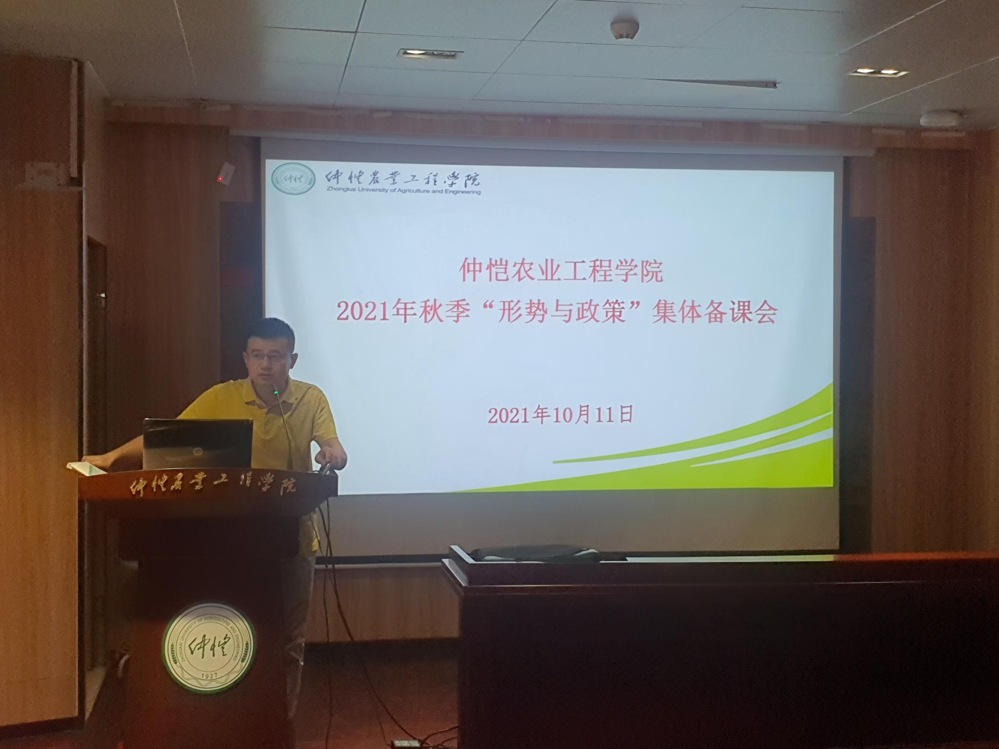 为贯彻落实教育部《关于加强新时代高校“形势与政策”课建设的若干意见》精神,根据《广东省教育厅办公室关于举办2021年秋季 “形势与政策”课备课会的通知》《关于做好各学院党总支书记、院长上第一堂思想政治理论课工作的通知》(仲党办字[2021]8号)以及学校的相关制度,为提升我校“形势与政策”课教学质量和水平,402永利集团官网于2021年10月11日在英东楼111学术报告厅举办了2021年秋季学期全校“形势与政策”课集体备课会。本次会议由402永利集团官网秦抗抗副院长主持,形势与政策教研室主任康耀坤副教授等四位老师做示范教学。
