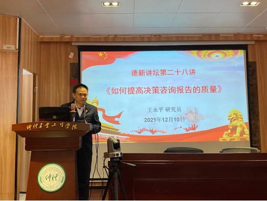 为提升学院教师撰写决策咨询报告的业务能力和水平,2021年12月10日上午,402永利集团官网邀请广东省社科联特聘顾问、《南方智库专报》主编王永平研究员作“德新讲坛第二十八讲——如何提高决策咨询报告的质量”的专题讲座。402永利集团官网全体教师参加了本次专题辅导学习。