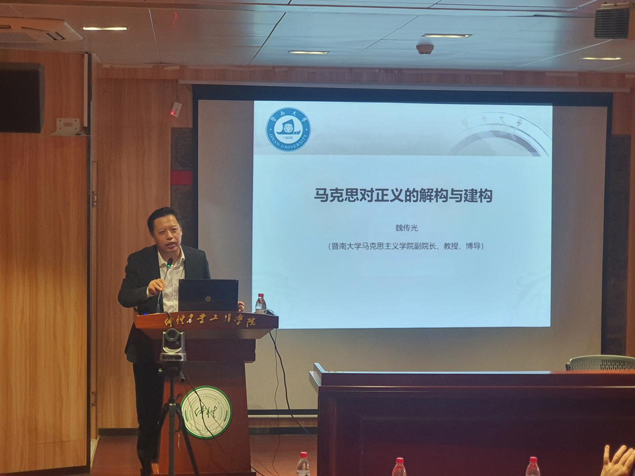 讲座的第一部分内容,魏教授首先做“马克思对‘正义’的解构与建构”的学术报告分享。讲座中,魏教授从马克思正义思想研究“热起来”的脉络、理解马克思正义思想的主要向度以及主要限度等方面展开讲解,系统阐释了马克思正义思想的核心要义。他认为,马克思虽然没有对“正义”的具体形态进行系统地论述,但是其核心关切始终是“如何实现正义”的问题。因而,马克思在思考正义问题时,采用的是“先解构再建构”的方式,凸显出批判性、历史性、实践性、实质性、根源性、超越性的六个主要向度。同时也提到,我们在理解马克思正义思想时要明确的五个主要限度:正义在马克思那里不是制度的首要美德,也不是唤醒无产者的主要方式,正义作为一种“意识形态”,被马克思谨慎用之,并且对正义的批判也不是马克思资本主义批判的主要类型。这场关于马克思正义思想的知识盛宴启示我们,做研究要基于中国的现实问题去分析,不应过度夸大某个研究点的重要性。