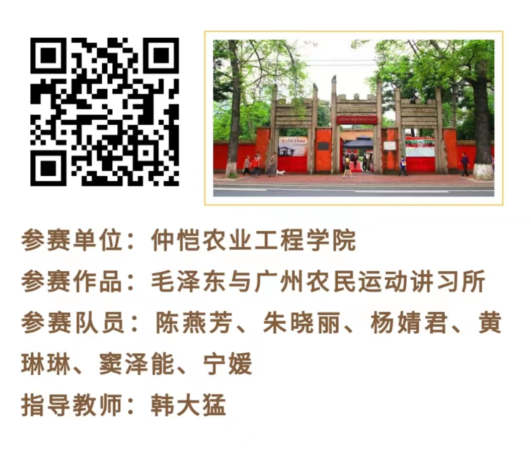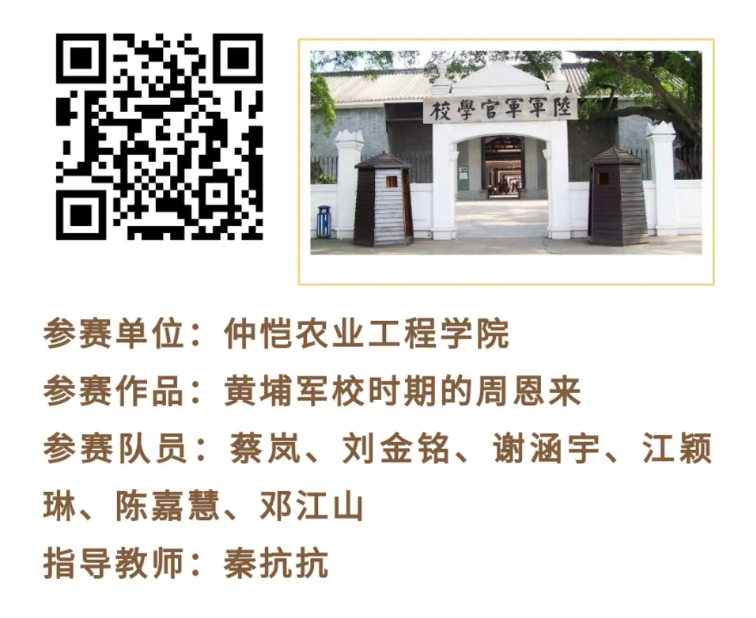 三等奖《黄埔军校旧址纪念馆》,成员:蔡岚(队长)、刘金铭、谢涵宇、江颖琳、陈嘉慧、邓江山,指导老师:秦抗抗