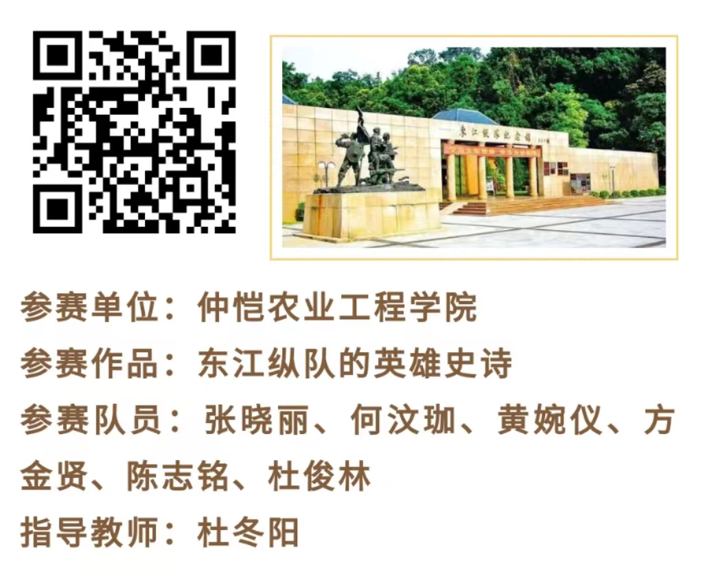 二等奖《东江纵队的英雄史诗》,成员:张晓丽(队长)、何汶珈、黄婉仪、方金贤、陈志铭、杜俊林、肖思桐、刘颖仪,指导老师:杜冬阳