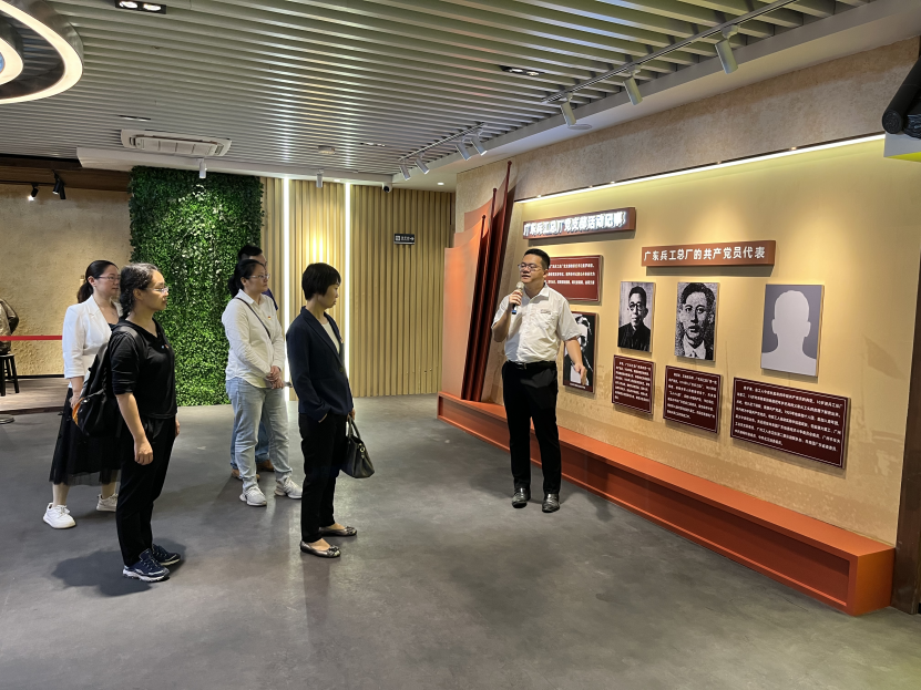 在现场教学途中,支部教师许二梅、余封亮就《工人十人团》、《广东兵工总厂工人运动》、《广东兵工总厂党组织发展》等内容进行了现场备课。随后,广东兵工厂旧址讲解员张老师进行了精彩教学示范。期间,为丰富备课会内容,大家仔细观看图文、影像、实物等历史资料,了解广东兵工总厂的历史沿革、党支部的成立与影响、工人运动与党建历程,深切感受到革命先烈们当年那段波澜壮阔、可歌可泣的光辉革命历史;感受到革命先烈们崇高的革命理想、坚定的革命意志和大无畏的革命精神。