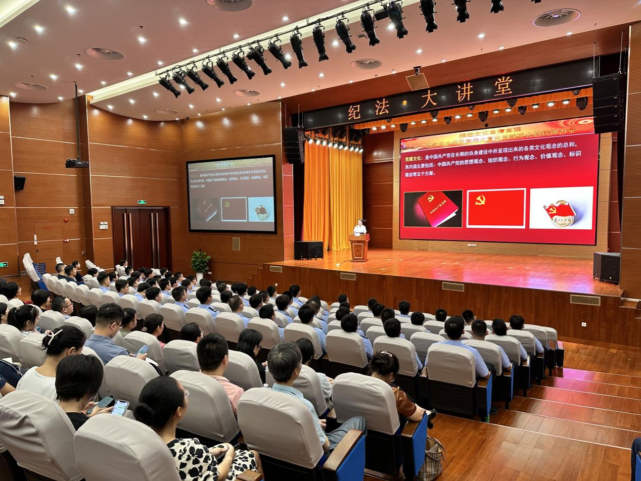 在基地“纪法 大讲堂”,省直机关工委机关纪委专职副书记陈伟生同志讲授廉政课,他以“推进文化自信自强 为实现中华民族伟大复兴贡献强大的精神力量”为题,从“文化重要作用”“中国文化组成”“当前中国文化面临危机”“推进中国文化自信自强”四个方面进行讲述,现场氛围热烈。