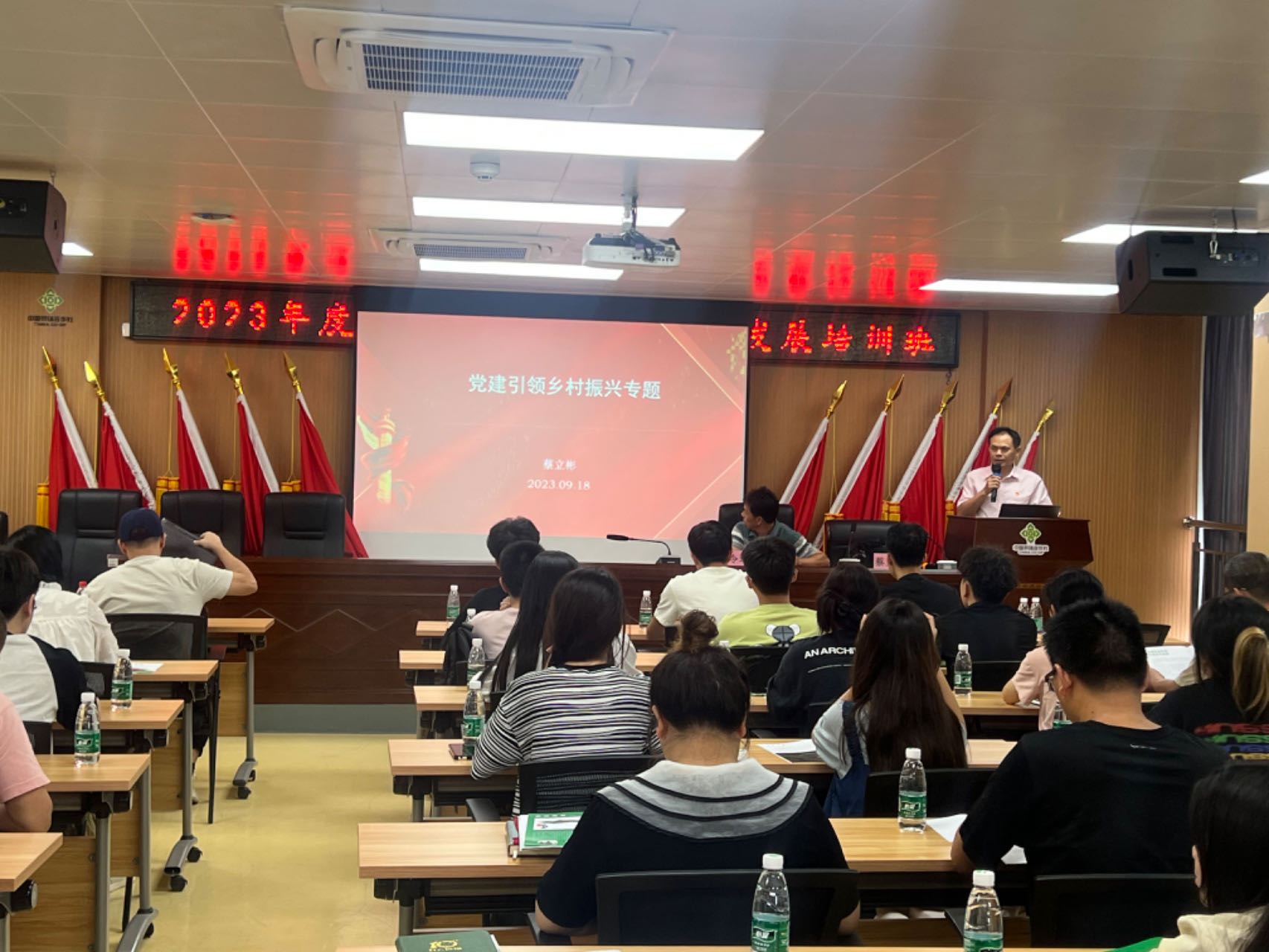 我院马克思主义院长蔡立彬教授作“党建引领乡村振兴”专题报告。他从“以党建为统领,全面推进乡村振兴;为什么抓党建能有效推进乡村振兴;如何深入有效推进抓党建促乡村振兴”三个方面展开了论述,并引用广东广州市南沙区“乡愁党建”引领“乡村振兴”蝶变、贵州贵定县推行“党建引领 金融赋能”乡村振兴新模式两个先进案例,来详细说明党建引领乡村振兴,激活乡村振兴新动力的生动实践。