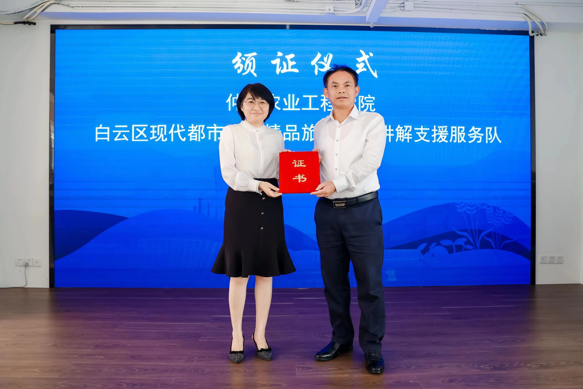 会上,白云区农业农村局为白云区三个现代都市农业精品旅游资源点——钟落潭镇沙田村、广州种业之都启动区、百兴穗香邨颁证,为402永利集团官网颁发白云区现代都市农业精品旅游志愿服务队证书,来自402永利集团官网的志愿者们即将走入展馆、深入田间,为游客朋友提供志愿讲解服务,为乡村振兴注入青年力量,打造大学生“百千万工程”突击队。