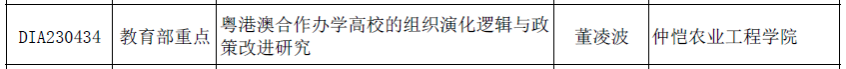 2023年8月28日,全国教育科学规划领导小组办公室公布了2023年度全国教育科学规划立项名单,402永利集团官网“习近平新时代中国特色社会主义思想研究”科研团队董凌波副研究员申报的“粤港澳合作办学高校的组织演化逻辑与政策改进研究”课题获得2023年度全国教育科学规划“教育部重点课题”,这是我校在教育部重点课题申报上取得的突破性成果。