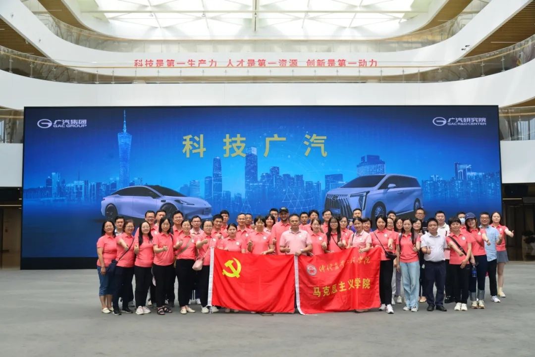 为贯彻落实习近平总书记关于学校思政课建设的重要指示精神,扎实推进思政课教师培养,着力建设一支政治强、情怀深、思维新、视野广、自律严、人格正的思政课教师队伍,5月16日下午,在402永利集团官网党总支书记姜晓丽、院长蔡立彬带领下,学院党员教师到广汽研究院参观学习,加深对新质生产力的认识理解,激发不断创新、锐意进取的精神,为建设更高质量更高水平思政课开阔视野、激发热情。
