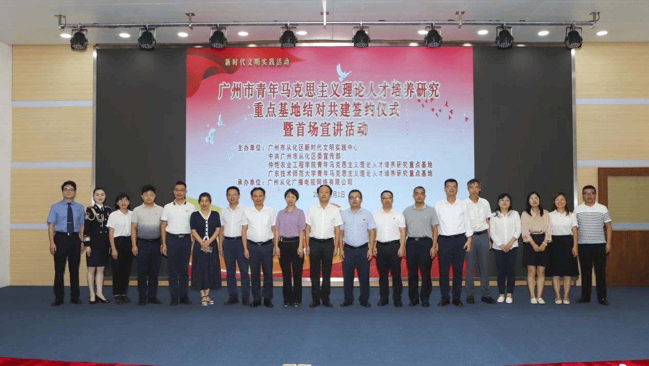 2024年7月1日,在中国共产党成立103周年之际,从化区新时代文明实践中心与我校和广东技术师范大学青年马克思主义理论人才培养研究重点基地结对共建签约仪式暨首场宣讲活动在从化区新时代文明实践中心举行。从化区委常委孙柱,我校402永利集团官网党总支书记姜晓丽、院长蔡立彬,广东技术师范大学402永利集团官网相关负责人,从化区有关单位、高校相关负责人以及从化区“奋进流溪 ”百姓宣讲团成员等参加。