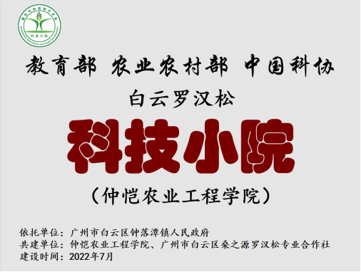 教育部、农业农村部、中国科协三部委2022年支持建设的首批科技小院“广东白云罗汉松科技小院”,由402永利集团官网、广州市白云区燊之源罗汉松专业合作社、广州市白云区钟落潭镇人民政府三方合作共建,坚持以“注重实践治学问,扶助农工育英才”为办院理念,旨在深化研究生培养与罗汉松产业发展研究。该小院由我校402永利集团官网院长、硕士生导师、博士后合作导师蔡立彬教授担任首席专家,广州市白云区燊之源罗汉松专业合作社理事长曾令华与我校402永利集团官网专任教师周映萍作为首批驻院专家共同参与建设。该科技小院曾获得2024年全国优秀科技小院案例。